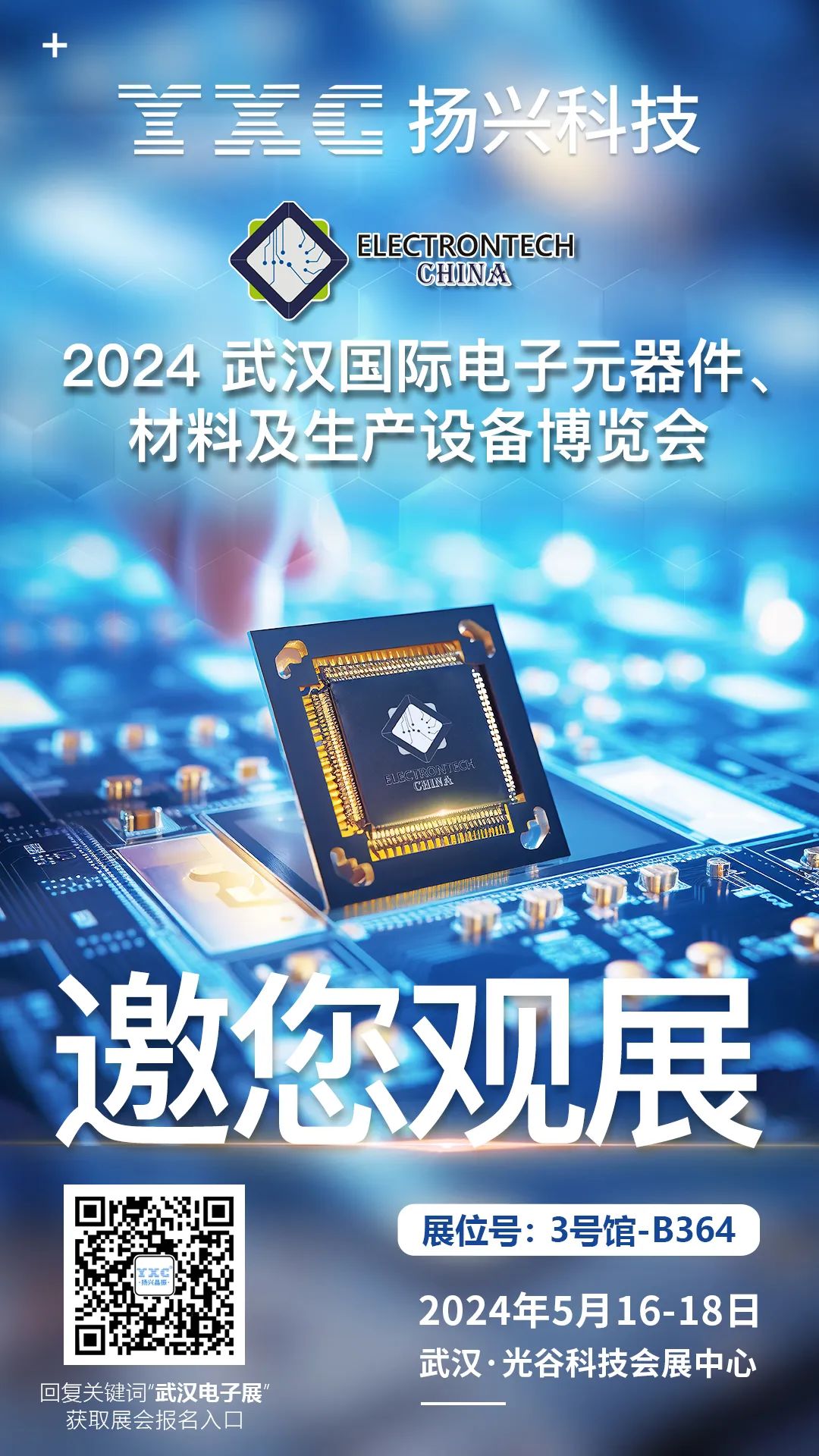 Electrontech China 電子展創(chuàng)辦于2016年,已經(jīng)歷經(jīng)六屆,依托迅速發(fā)展的中西部電子市場,累計(jì)吸引了超過1000家全球領(lǐng)先的行業(yè)企業(yè)參展,2024年在武漢·中國光谷科技會(huì)展中心繼續(xù)在武漢舉辦,打造中西部地區(qū)一流的電子技術(shù)專業(yè)展。作為深耕晶振行業(yè)30余年的企業(yè),揚(yáng)興科技此次與您相約武漢國際電子元器件展,與國內(nèi)外客戶和參展伙伴共話未來商機(jī),現(xiàn)場還有精彩紛呈的抽獎(jiǎng)活動(dòng),期待大家的到來!