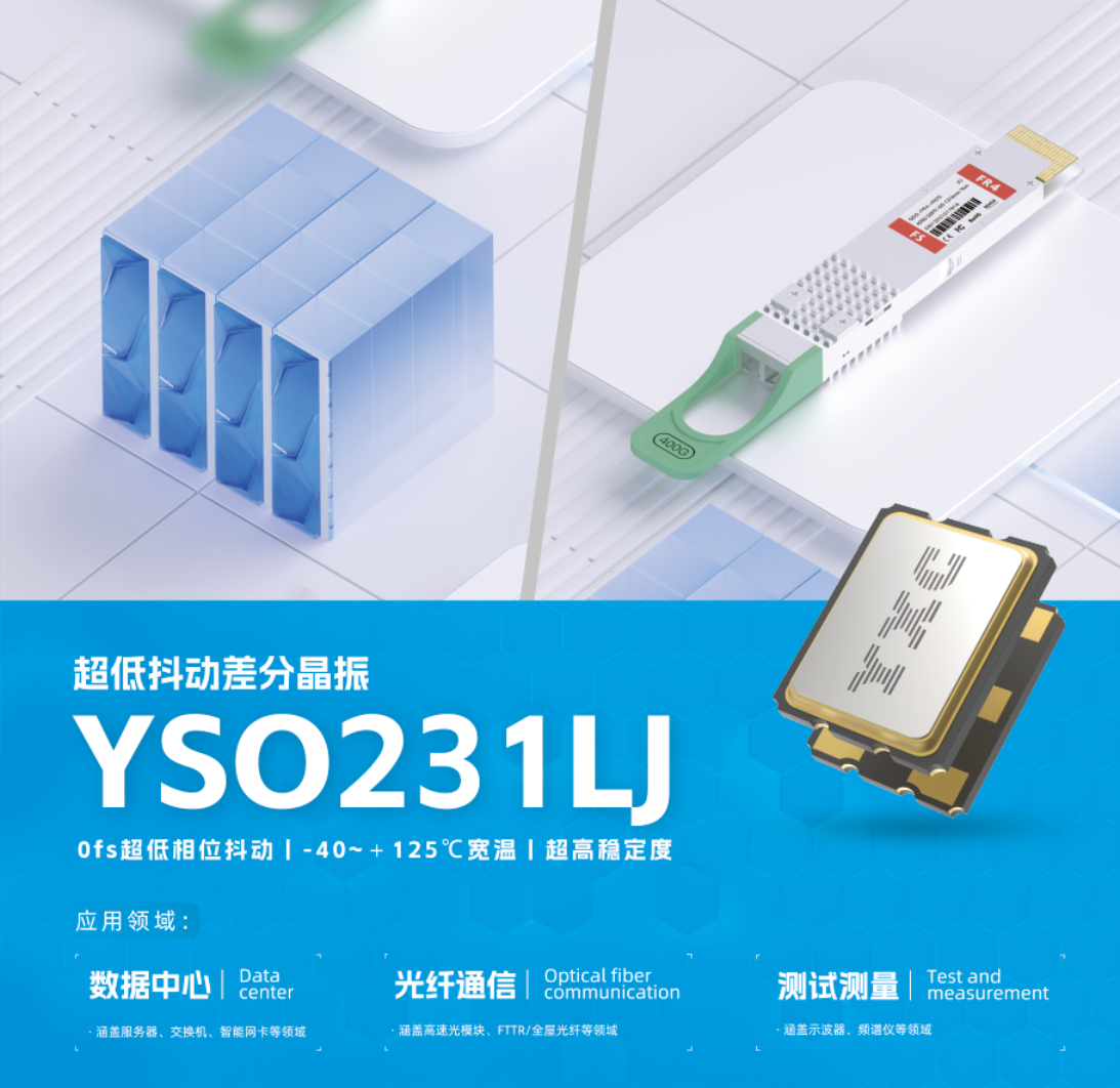 三、YSO231LJ 超低抖動(dòng)差分晶振——光纖通信、數(shù)據(jù)中心及測(cè)試測(cè)量領(lǐng)域的明星產(chǎn)品。50fs的超低相位抖動(dòng),結(jié)合-40~+125℃的寬溫工作范圍與超高穩(wěn)定度,為高速數(shù)據(jù)傳輸提供了堅(jiān)如磐石的保障,助力構(gòu)建更加穩(wěn)定高效的信息網(wǎng)絡(luò)。