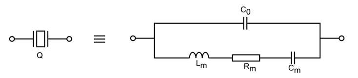 石英晶片經(jīng)過被電極,上架、封裝即成為壓電諧振器。當(dāng)外加電場的交變頻率與石英晶片的固有頻率相接近,且外加電壓的角頻率ω等于石英機(jī)械振動(dòng)的固有諧振角頻率ω時(shí)(取決于石英晶體的幾何尺寸和切型),晶片產(chǎn)生機(jī)械諧振,彈性振動(dòng)通過壓電效應(yīng)與回路相耦合,其效果等于由Lm,Cm,Rm的串聯(lián)臂和C0并聯(lián)組成的諧振回路。此時(shí)機(jī)械振動(dòng)的幅度最大,相應(yīng)地晶體表面所產(chǎn)生的電荷量最大,外電路中電流最大。