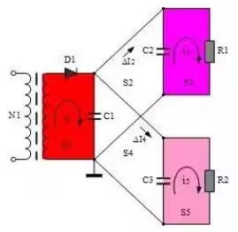 幾個(gè)電流回路互相串聯(lián)在一起進(jìn)行供電,容易產(chǎn)生電流共模干擾,特別是在高頻放大電路中,會(huì)產(chǎn)生高頻噪音。電流共模干擾的原因是:?I2 = ?I3+ ?I4+ ?I5