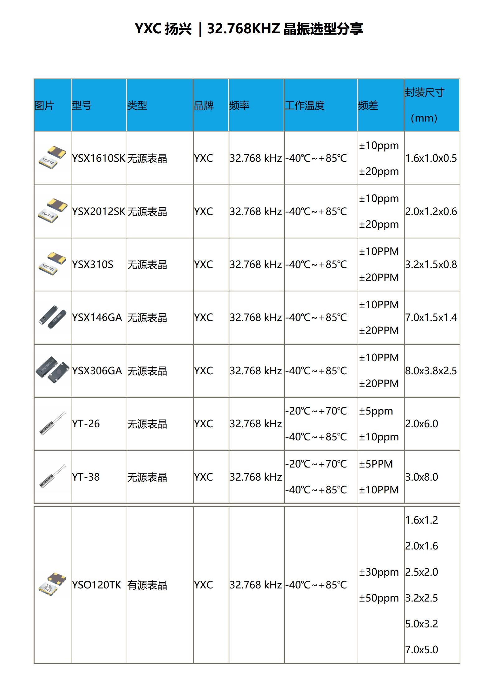YXC揚(yáng)興 | 32.768KHZ晶振選型分享