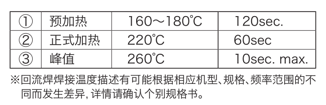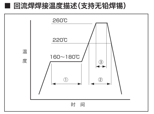 有關(guān)SMD產(chǎn)品的回流焊焊接溫度描述,請(qǐng)參照下圖。