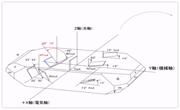 就是對(duì)晶體坐標(biāo)軸某種角度去切割。切型有非常多的種類,因?yàn)槭⑹歉飨虍愋缘?,所以不同的切型其物理性質(zhì)不同。