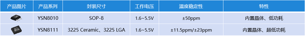 > YXC實時時鐘(RTC)產品組合