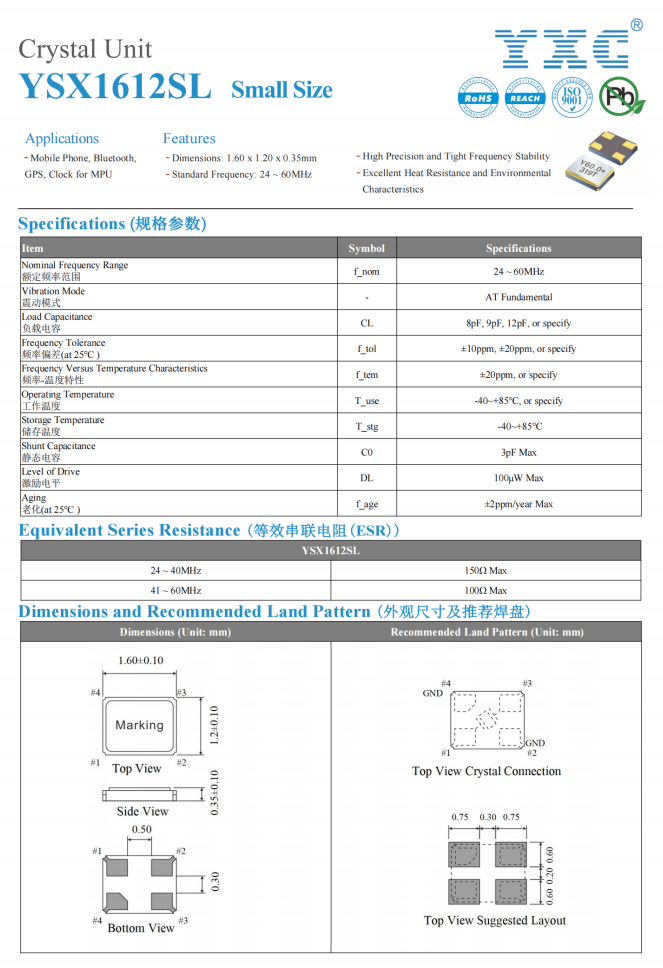 (2) 小型、超薄石英晶體振蕩器,最小封裝尺寸1.6*1.2*0.6mm;